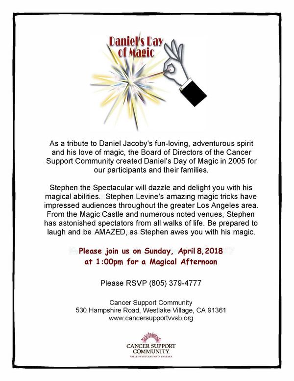 Flyer for Charity Event "Daniels' Day of Magic" for Cancer Support Community
