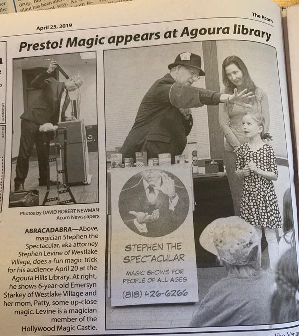 Stephen has performed at wineries, corporate holiday parties, children's birthday parties and local private parties, Stephen the Spectacular's high-energy interactive entertainment is sure to bring — not just fun — but professionalism and experience to your event. Stephen specializes in performing for family events and for children of all ages. Stephen the Spectacular is Stephen Levine, a magical entertainer with decades of experience in entertaining children and adults alike!